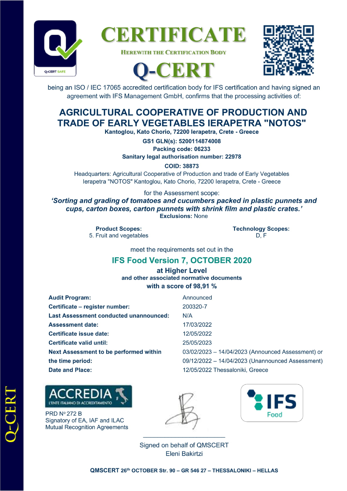 Για περισσότερες πληροφορίες επισκεφτείτε το website τους: IFS FOOD